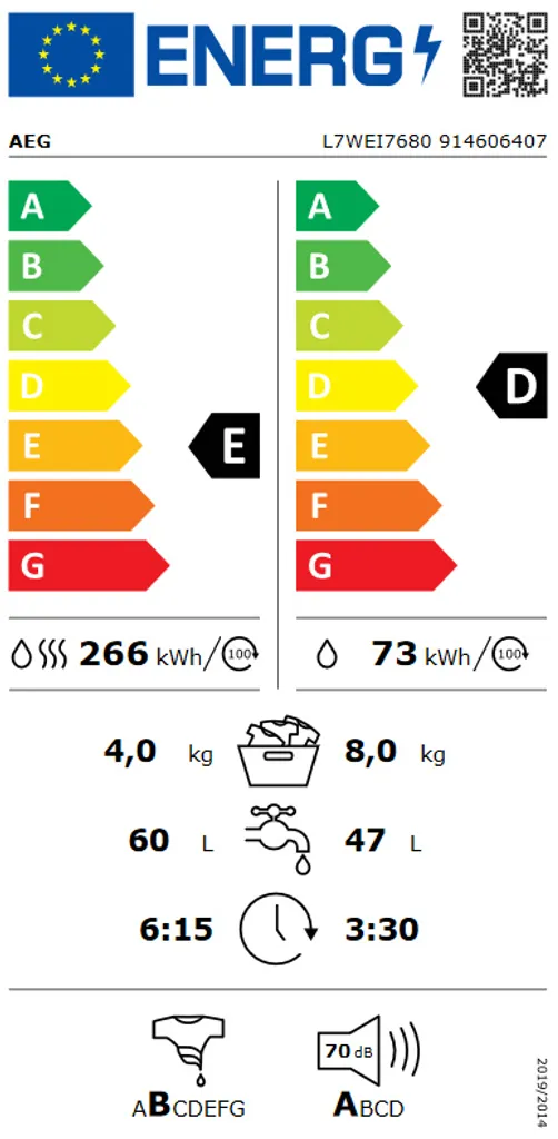 AEG – L7WEI7680 – Einbau-Waschtrockner – 8/4 Kg