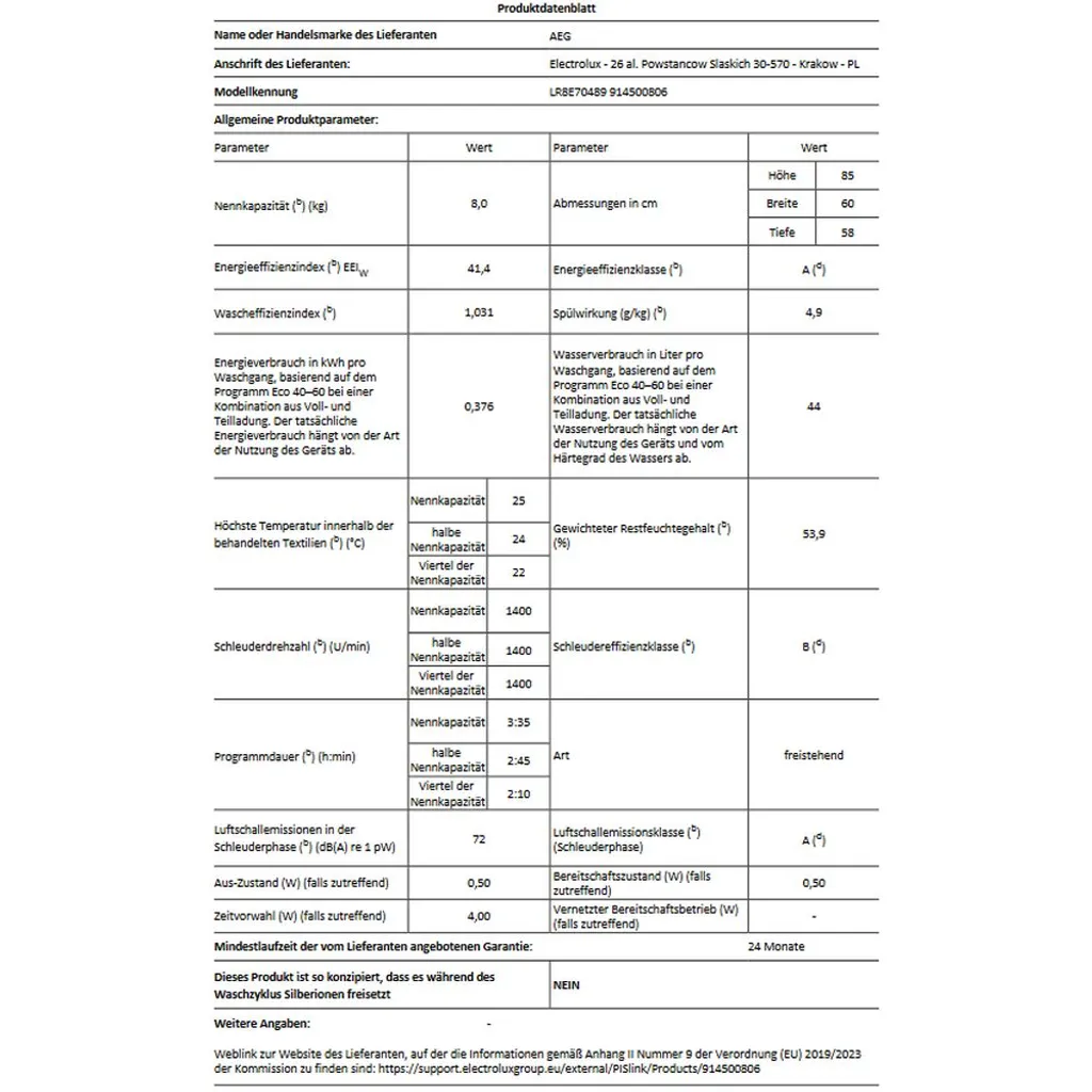 AEG – LR8E70489 – Waschmaschine – 8 Kg