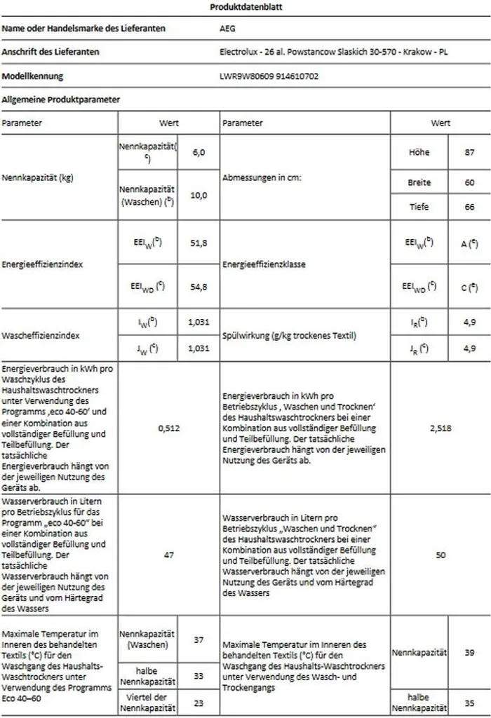 AEG LWR9W80609 Waschtrockner Frontlader Freistehend 10kg + 6kg Öko Lavamat