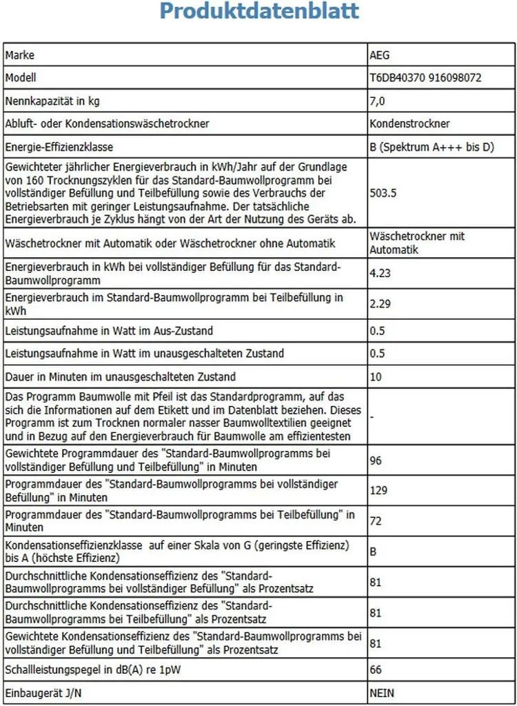 AEG – T6DB40370 – Kondenstrockner – 7 Kg