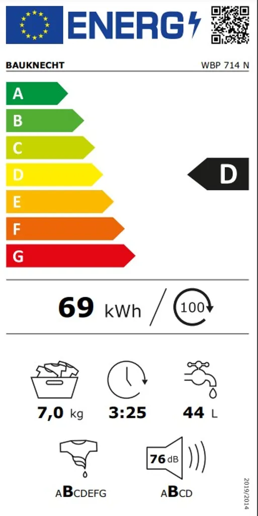 Bauknecht Waschmaschine WBP714N 7kg 1400U/min Allergie-Programm EEK; D