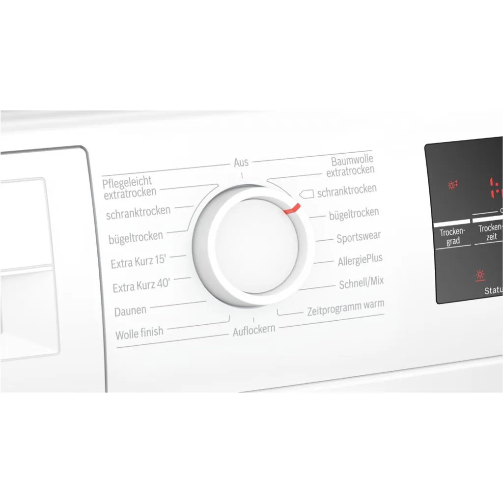 Siemens IQ500 WT45R4A1, Freistehend, Frontlader, Hitzepumpe, Weiß, Tasten, Drehregler, Rechts