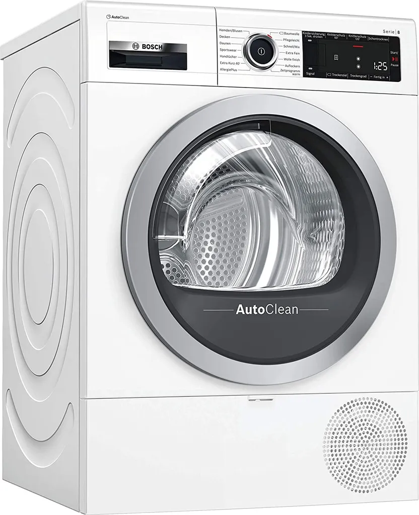 Bosch WTX87M00 Serie 8 Wärmepumpen-Trockner, 8 Kg, Sensitive Drying System Textilschonende Trommelstruktur, AutoDry Optimale Trocknung, AutoClean Automatische Flusenentfernung, Endezeitvorwahl