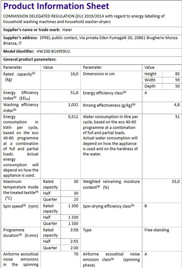 Haier HW100-B14959U1 Waschmaschine Frontlader 10kg Dampf AquaProtect