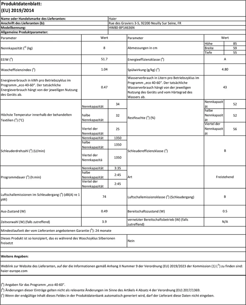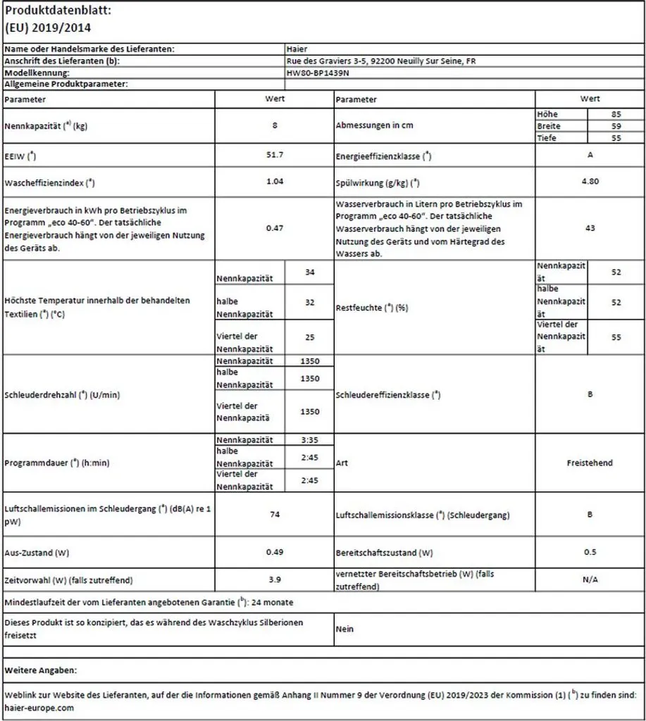 Schreibe die erste Rezension für „Haier HW80-BP14636N Waschmaschine 8 Kg Inverter Motor Vollwasserschutz“ Antwort abbrechen