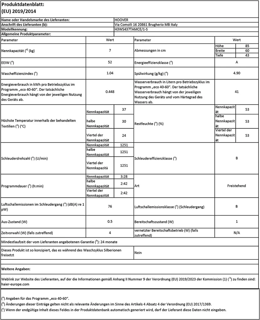 Schreibe die erste Rezension für „HOOVER H3WS437TAMCE/1-S H-WASH 300 Waschmaschine Frontlader 7kg“ Antwort abbrechen