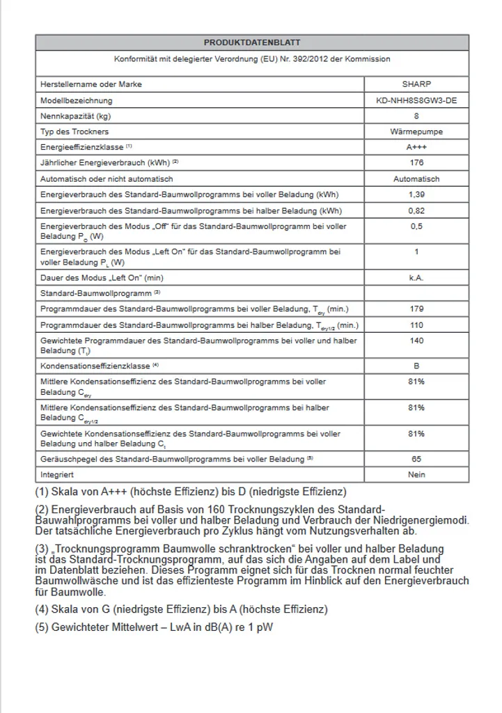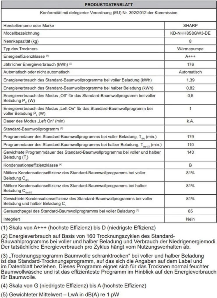 Schreibe die erste Rezension für „Sharp – KD-NHH8S8GW3-DE – Wärmepumpenrockner – 8 Kg –“ Antwort abbrechen