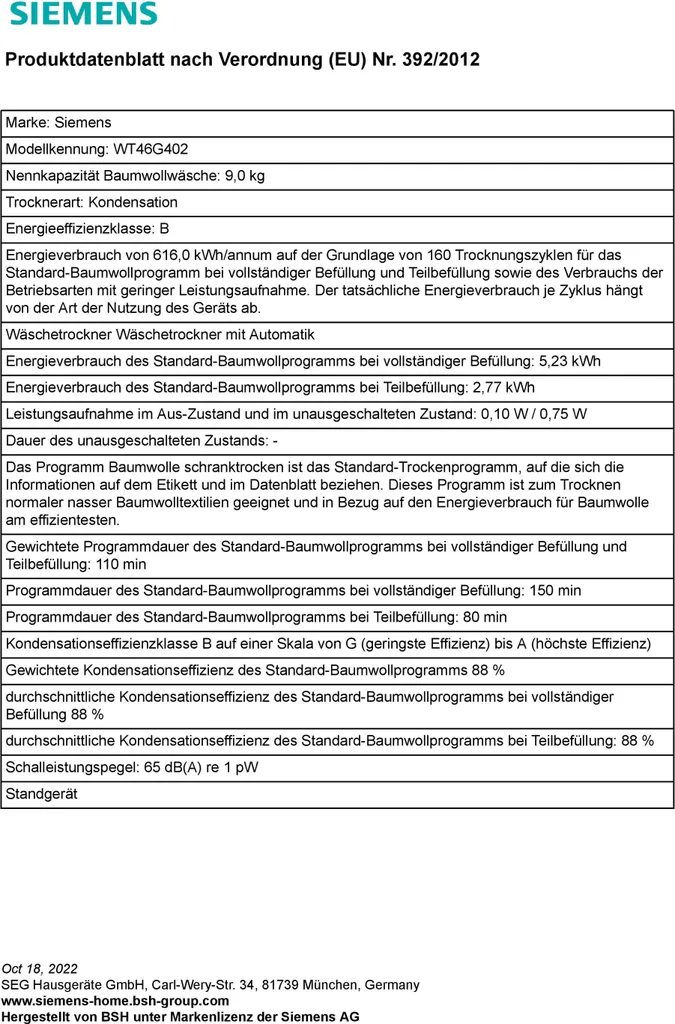 Schreibe die erste Rezension für „Siemens WT46G402, IQ500, Kondensations-Trockner, 9 Kg“ Antwort abbrechen