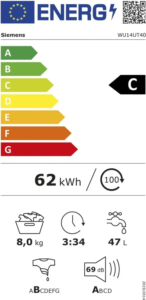 Siemens WU14UT40 IQ500 Unterbaufähige Waschmaschine / 8kg / C / 1400 U/min / VarioSpeed Funktion / Nachlegefunktion / AquaStop