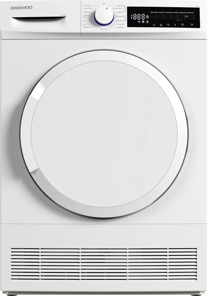 Schreibe die erste Rezension für „Trockner Kondenstrockner Wäschetrockner 8kg 15 Programme DAEWOO T8CT2W0DE“ Antwort abbrechen