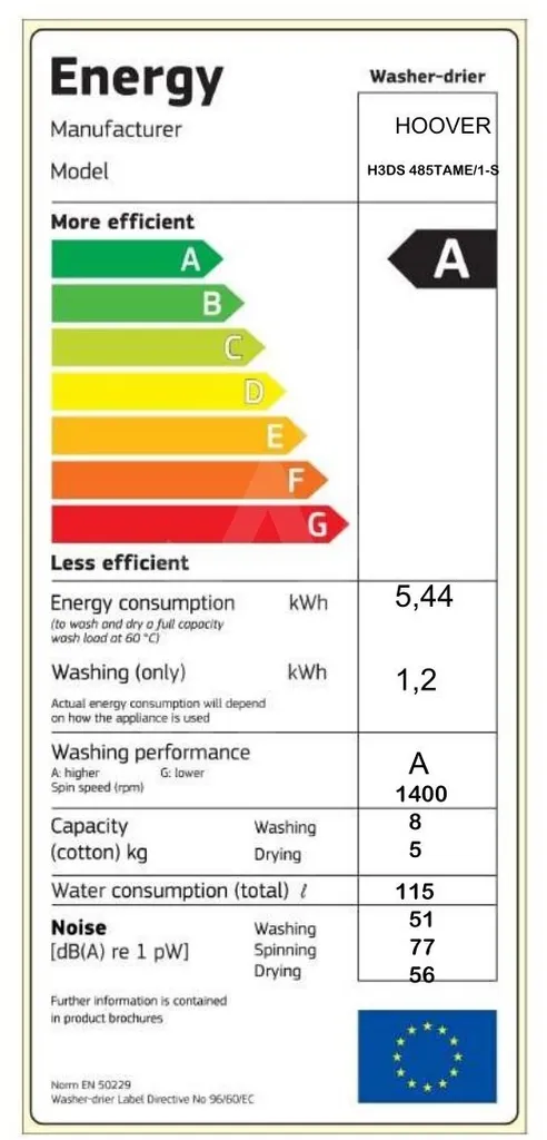 Waschtrockner Hoover H-WASH 300 PLUS H3DS 485TAME/1-S Frontlader NFC-Technologie Power Care System